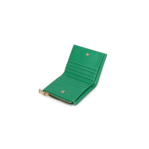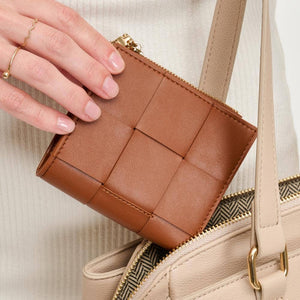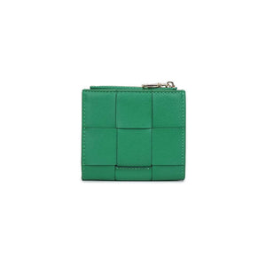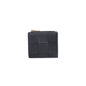 The woven design and gold hardware make a fashion statement, while the snap button closure ensures your belongings stay secure. Inside, find a thoughtfully organized space with a main compartment, coin zip pocket, and eight card slots for maximum functionality. *Item Type: Wallet *Material: Vegan Leather *Closure: Snap Button *Exterior Details: Woven Vegan Leather, Gold Hardware *Interior Details: 1 Main Compartment, 1 Coin Zip Pocket, 8 Card Slot