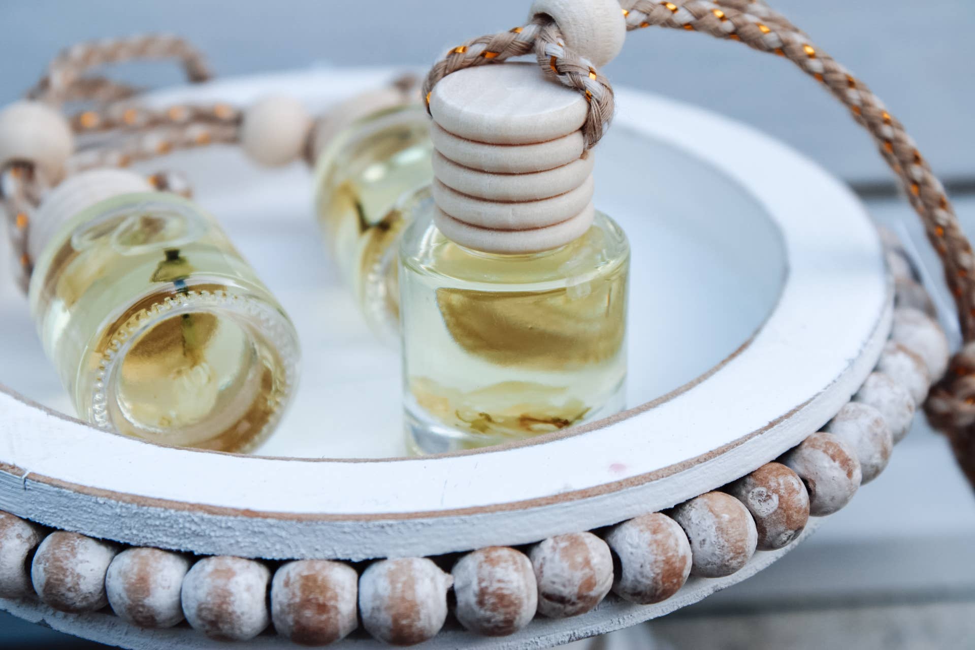 FRAGRANCE NOTES: sugared pears, caramel, crisp apple Each diffuser comes tagged with scent name, scent description, and instructions on the back. HOW TO USE: Step 1: Remove wooden lid + stopper. Step 2: Screw wooden lid back on. DO NOT Step 3: Carefully tie onto rearview mirror. Step 4: Tip upside down for 2-3 seconds. Hang at all times to avoid leakage. If leakage occurs, wipe immediately. Avoid contact with eyes, furnishings, and car interior. DO NOT INGEST. Store at room temperature when not in use. Recommended tipping over once a week.