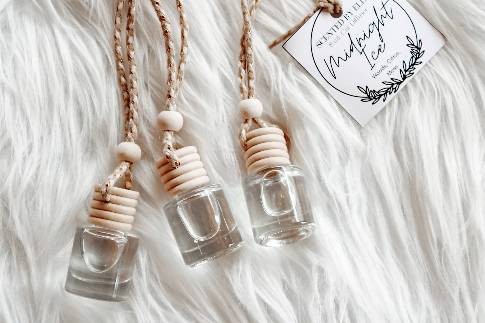 FRAGRANCE NOTES: woods, citrus, musk, moss Masculine fragrance Each diffuser comes tagged with scent name, scent description, and instructions on the back. HOW TO USE: Step 1: Remove wooden lid + stopper. Step 2: Screw wooden lid back on. DO NOT Step 3: Carefully tie onto rearview mirror. Step 4: Tip upside down for 2-3 seconds. Hang at all times to avoid leakage. If leakage occurs, wipe immediately. Avoid contact with eyes, furnishings, and car interior. DO NOT INGEST. Store at room temperature when not in use. Recommended tipping over once a week.